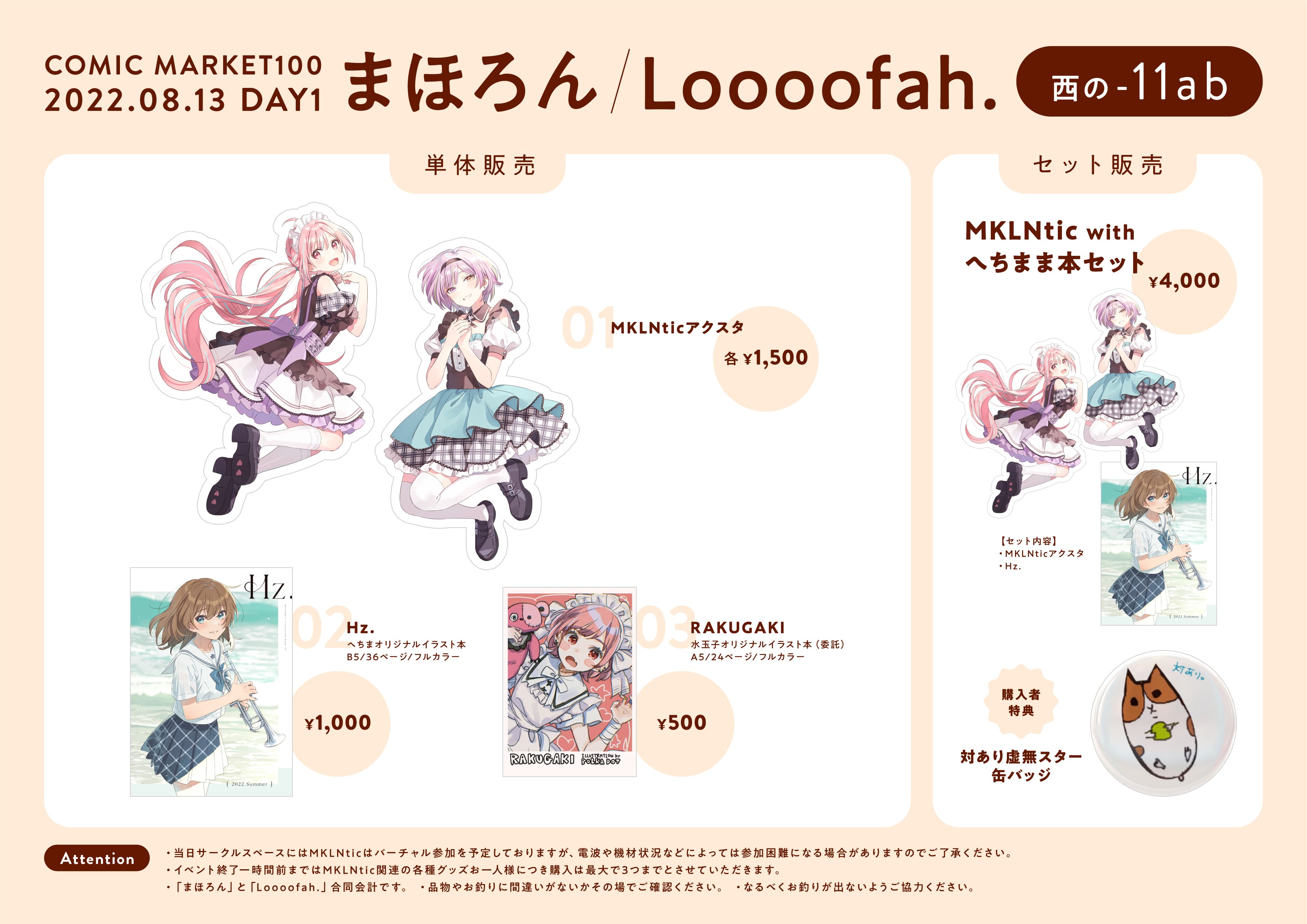 2022/8/13~8/14に開催されたコミックマーケット100(C100)に参加した、MKLNticが